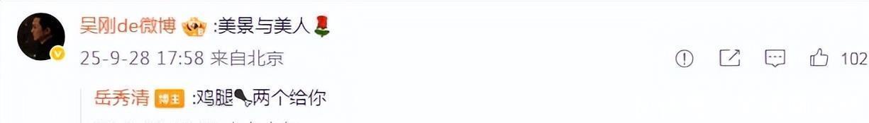 小吴刚5岁的她,穿着一件亮眼的橙红色皮衣,皮肤被衬得白到发光,再配上一副墨镜,那股子又酷又飒的劲儿扑面而来。 她自己的社交媒体上也没闲着,晒出了老公吴刚在巴黎为她拍摄的美照。 吴刚立马跑到评论区献上深情告白:“美景与美人”,岳秀清的回复更绝,带着点小俏皮:“鸡腿,两个给你。 ”这波狗粮撒得,让年轻情侣都自愧不如。 结婚这么多年,还能保持这种甜蜜互动,难怪他们家当年能被全国妇联评为“中国和乐家庭”。