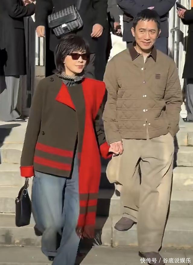 网友戏称这画面宛如被班主任请家长的小学生。刘嘉玲与梁朝伟的相处模式确有趣味,完全是一副霸道女王与“小娇夫”的姿态。摘下墨镜的刘嘉玲皮肤白皙紧致,看着不过五十岁上下。